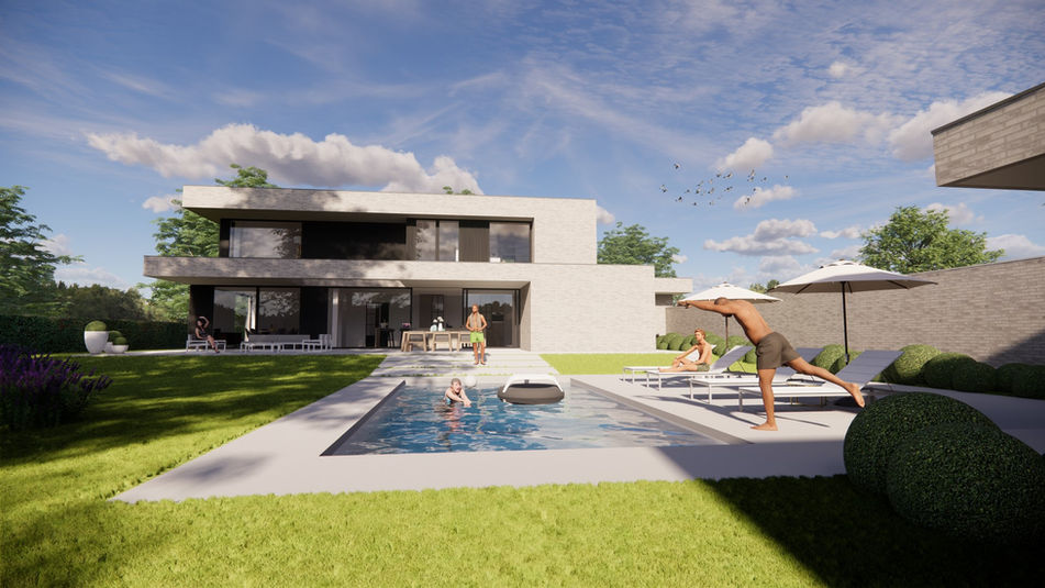 bouwen van een woning met zwembad en poolhouse